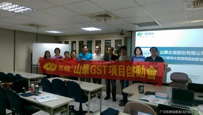 春曉攜手山華走向標準化、信息化的發展之路,為山華臺灣山華GST項目於2015年10月26日在高雄總部3樓會議室正式啟動。此次GST項目獲得了山華高雄市總部GST專案經理台灣山華企業股份有限公司成立於1987年,是擁有優良聲譽與優質產品的廠商,特別是在無縫貼條的專門技術上(seam-seal taping expertise),產品在北美洲和歐洲享有高度的聲譽,在2011年擁有5700萬美元的年營業額。客戶包括有 知名的品牌Columbia Sportswear, Russell-Mossy Oak, Cintas,BlackHawk, Aramark, Blauer, Carhartt, Body Glove, Rocky Boots, O’Neill陳慶仁的高度重視,屏東縣生產部廠長張育麒、生產技術督導蘇月嬌及IE人員參加此次項目啟動大會。